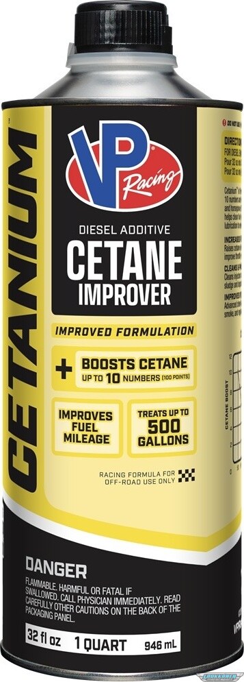 Additional information Cetanium® cetane booster additive is a true cetane booster performance improver for diesel. It boosts your fuel's cetane up to 10 numbers, cleans injectors and pumps, and much more. We design it to provide an explosion of power and engine performance for off-road diesel racing engines and applications. Not only is Cetanium a diesel cetane booster additive, but it also improves horsepower and will increase your fuel mileage. Not to mention, our diesel fuel supplement replaces lost lubrication, removes sludge and deposits, and reduces smoking. Most other similar brands don't provide these additional benefits. Cetanium is not intended for street-legal vehicles. It's for off-road applications only. For maximum benefit, use one 32-ounce can to treat 10 gallons of diesel fuel (37l). You can also treat more than 10 gallons of fuel. For example, if you need to only boost cetane by up to 5 numbers, use one full can to treat 20 gallons of fuel (76l).
