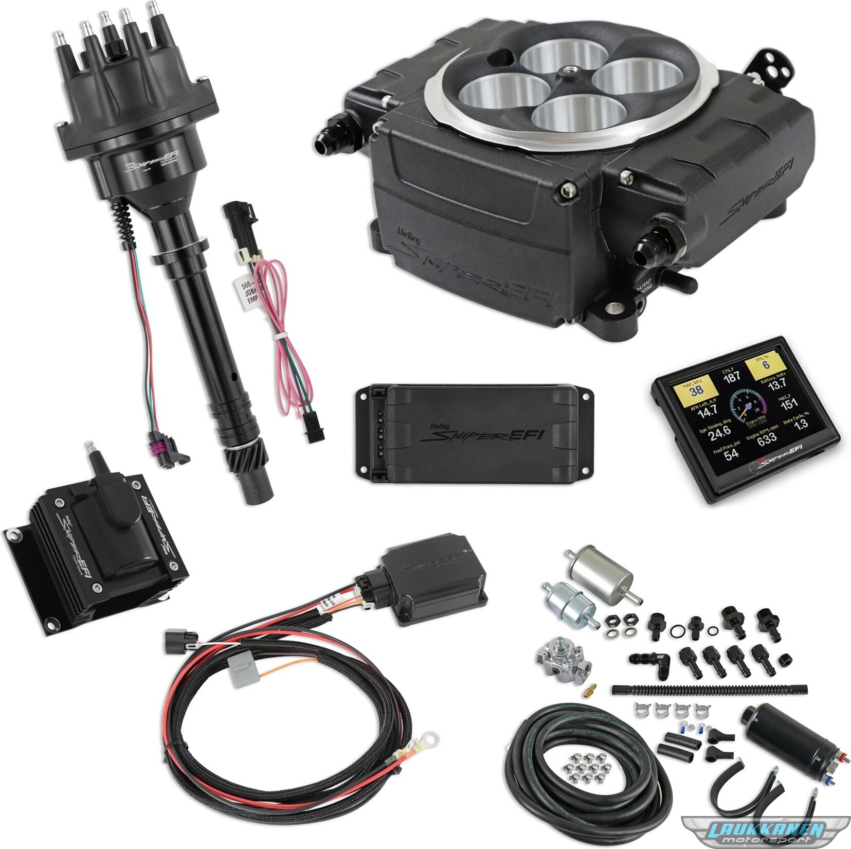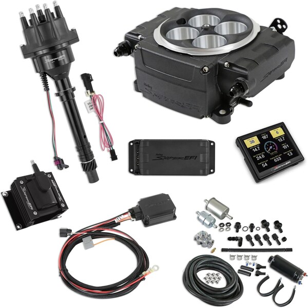 Popis produktuFuel Injection - Sniper EFI - Throttle Body - Square Bore - Aluminum - Black Powder Coat - Small Block Chevy - Kit