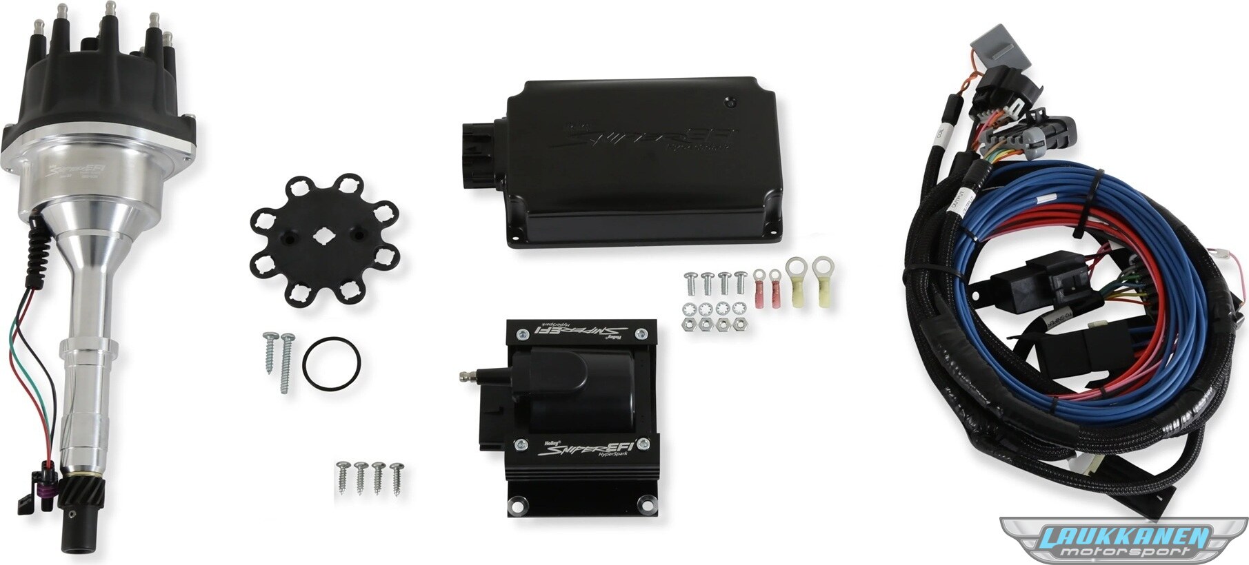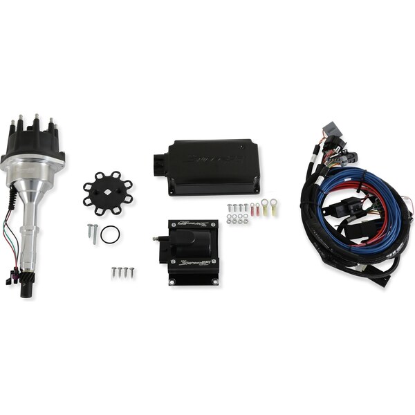 Popis produktuDistributor - Sniper EFI Hyperspark - Hall Effect Pickup - HEI Style Terminal - Coil / Ignition Box / Harness Included - Black - AMC - Kit