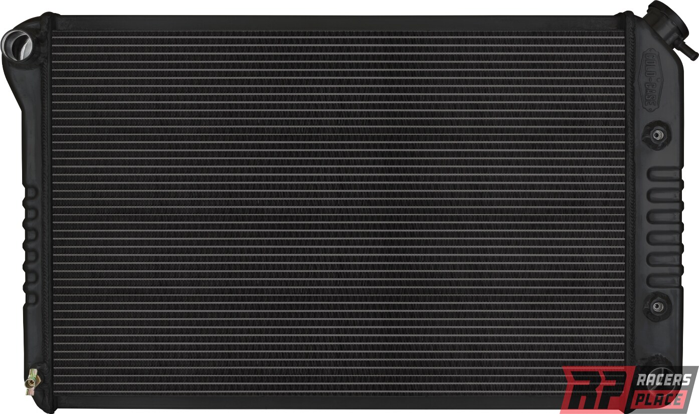 ProduktbeskrivelseRadiator - Black Night Rider Series - 32.5 in W x 19 in H x 3 in D - Driver Side Inlet - Passenger Side Outlet - Aluminum - Black Paint - Automatic - GM F-Body 1970-81 - Each