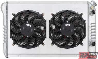 ProduktbeskrivelseRadiator and Fan - 32 in W x 18.5 in H x 6.75 in D - Passenger Side Inlet - Passenger Side Outlet - Aluminum - Polished - GM LS-Series - GM F-Body 1982-92 - Kit