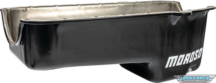 ProduktbeskrivelseEngine Oil Pan - Stock Replacement - Rear Sump - 5 qt - 7-1/2 in Deep - Steel - Zinc Oxide - Small Block Chevy - Each