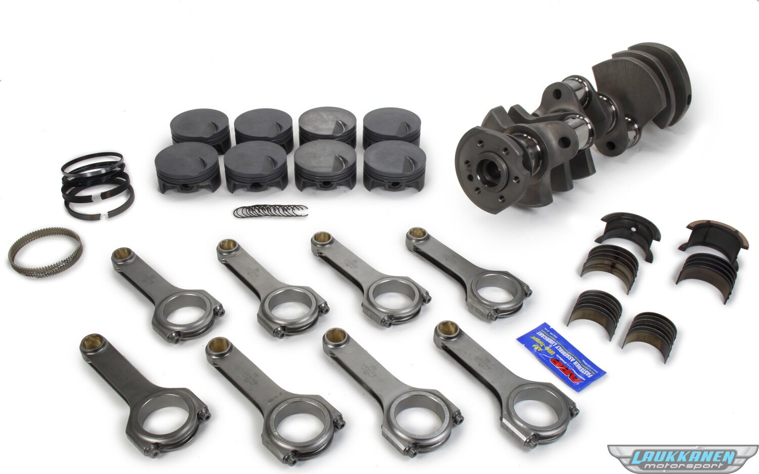 ProduktbeskrivelseRotating Assembly - 496 CID - Forged Crank - Forged Pistons - 4.250 in Stroke - 4.310 in Bore - 6.385 in Long H-Beam Rods - Big Block Chevy - Kit