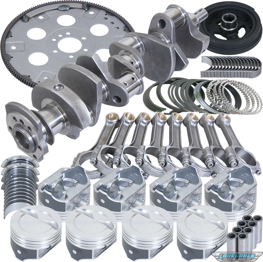 ProduktbeskrivelseRotating Assembly - 384 CID - Cast Crank - Hypereutectic Pistons - 3.750 in Stroke - 4.040 in Bore - 5.700 in I Beam Rods - Small Block Chevy - Kit