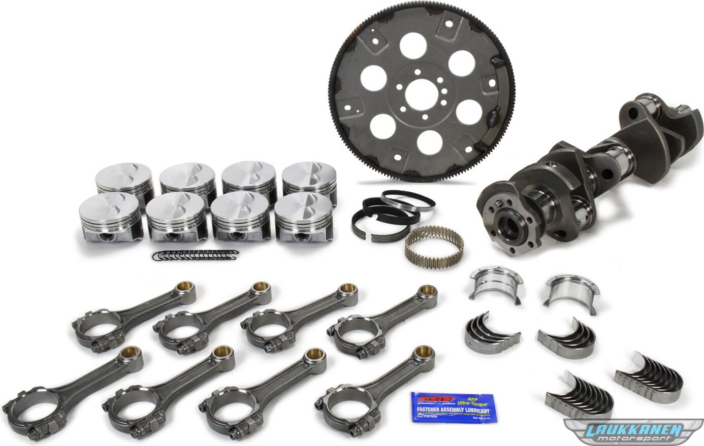 ProduktbeskrivelseRotating Assembly - 383 CID - Cast Crank - Hypereutectic Pistons - 3.750 in Stroke - 4.030 in Bore - 5.700 in I-Beam Rods - Small Block Chevy - Kit