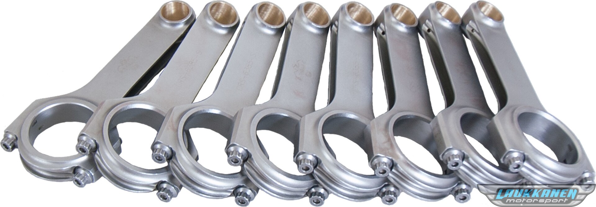 ProduktbeskrivelseConnecting Rod - H Beam - 6.385 in Long - Bushed - 7/16 in Cap Screws - Forged Steel - Big Block Chevy - Set of 8