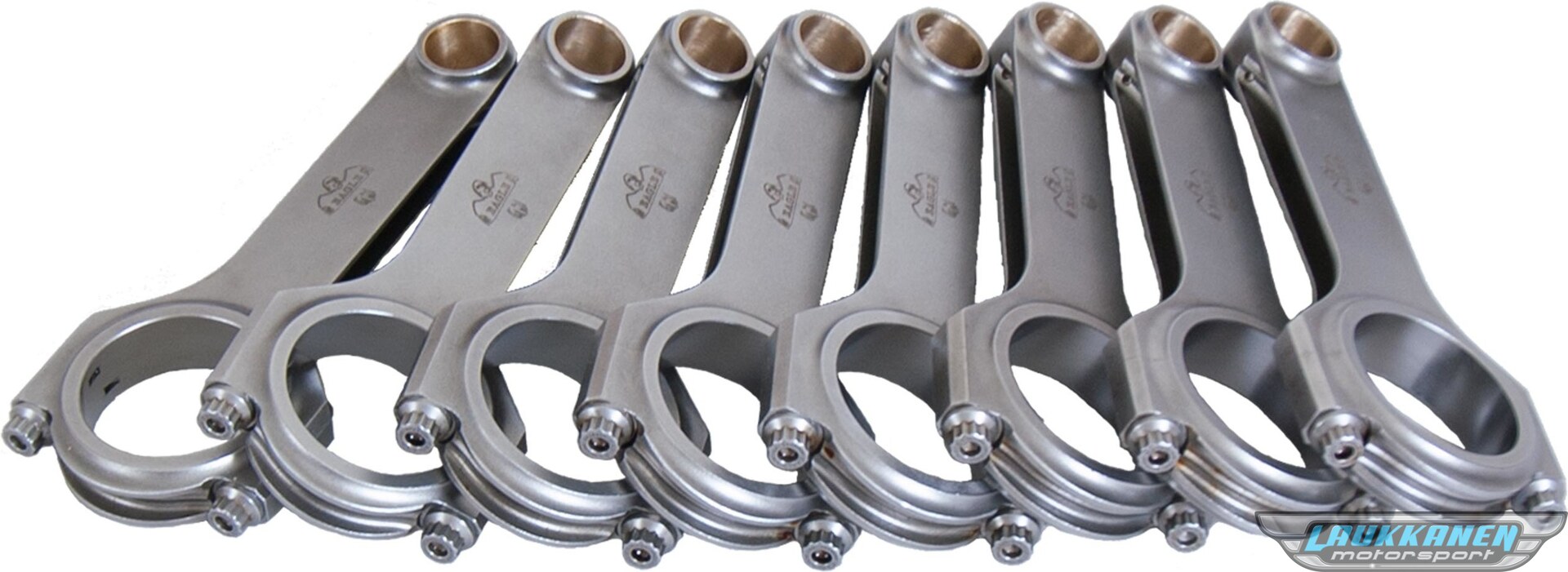 ProduktbeskrivelseConnecting Rod - H Beam - 6.700 in Long - Bushed - 7/16 in Cap Screws - Forged Steel - Big Block Chevy / Ford - Set of 8