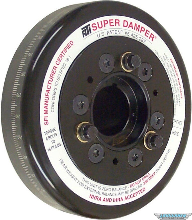 ProduktbeskrivelseHarmonic Balancer - Super Damper - 6.325 in OD - SFI 18.1 - Aluminum / Steel - Black - Internal Balance - Small Block Chevy - Each
