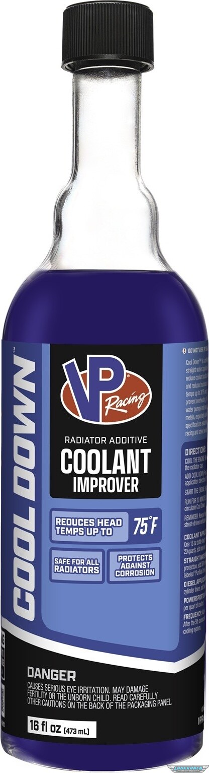 VP Racing Cool Down™ coolant additive is proven to reduce your engine temps (by up to 30°F) & cylinder head temps(by up to 75°F) while improving coolant flow. It works for gas and diesel engines & is safe for all radiator systems. Cool Down is ideal for your racing and street vehicles, RV, & towing applications.