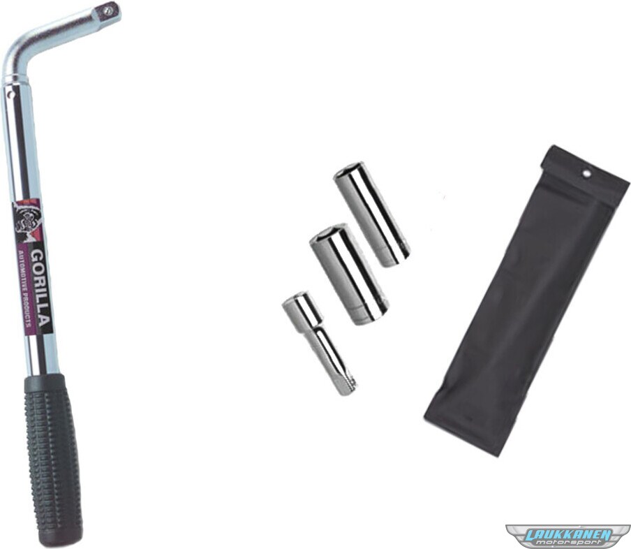 Product descriptionLug Wrench - Power Wrench - 13/16 in and 3/4 in Thin Wall Sockets - 21 in Telescoping Handle - 3 in Extension - Steel - Chrome - Kit