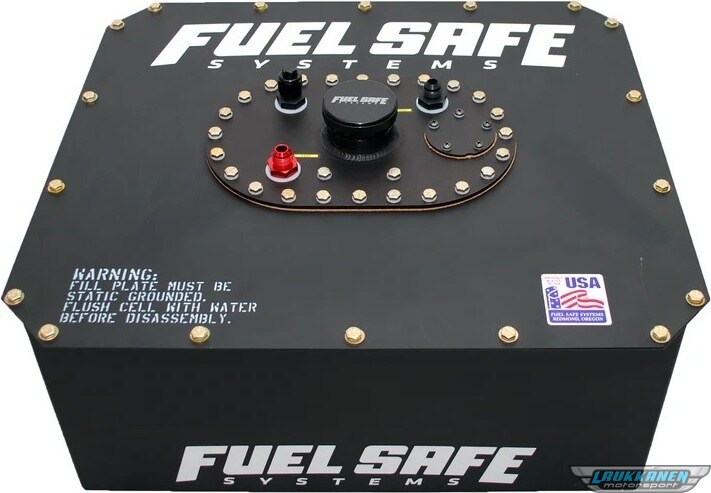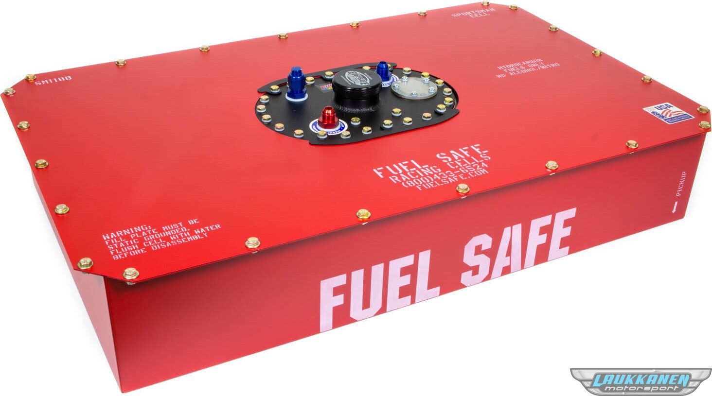 Product descriptionFuel Cell and Can - Sportsman - 18 gal - 33-1/2 x 20 x 6-1/2 in Tall - 8 AN Male Outlet / Return / Vent - Foam - Steel - Black Powder Coat - Each