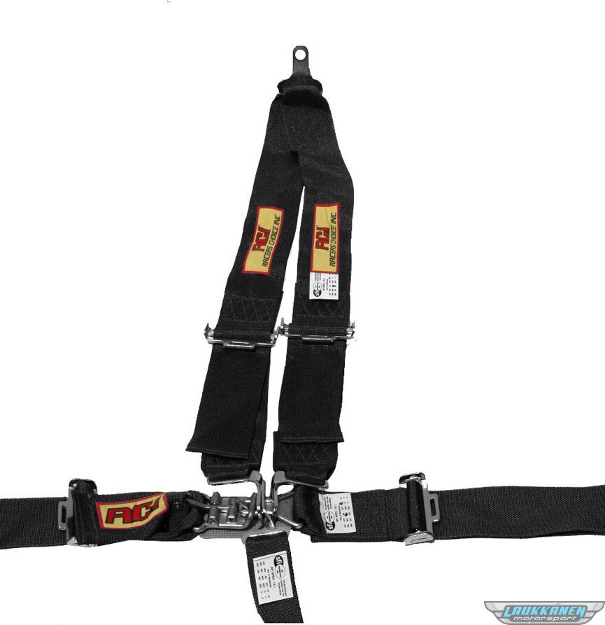 Product descriptionHarness - 5 Point - Latch and Link - SFI 16.1 - Pull Down Adjust - Bolt-On / Wrap Around - V-Type Harness - Black - Kit