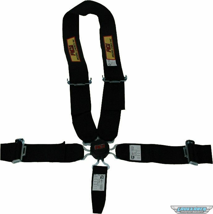 Product descriptionHarness - 5 Point - Camlock - SFI 16.1 - Pull Up Adjust - Bolt-On / Wrap Around - U-Type Harness - Black - Kit