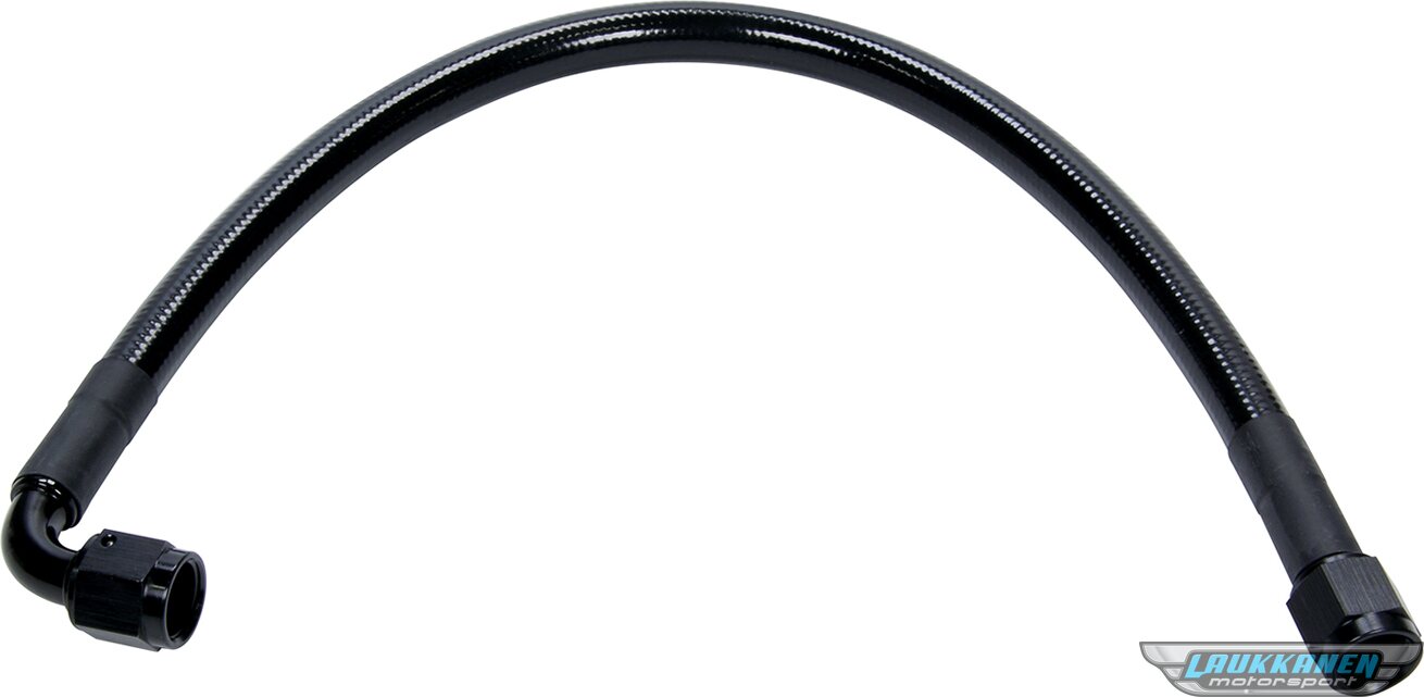 AN Hose Assembly - 12 in Long - 6 AN Hose - 6 AN Straight to 6 AN 90 Degree Female - Braided Stainless - Black Plastic Coated - PTFE - Black Fittings - Each