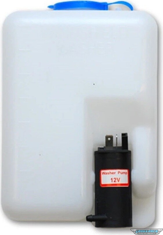 Product descriptionWasher Fluid Bottle - 7-7/8 in H x 5-1/4 in W x 4-1/4 in D - 1.2 L Capacity - 12V Electric Pump Included - Plastic - Clear - Kit