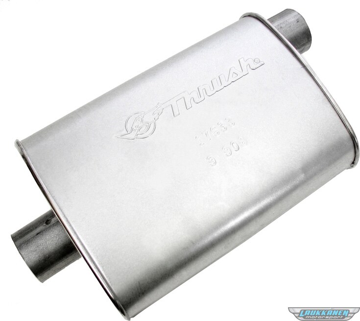 Muffler - Hush Super Turbo - 2-1/2 in Offset Inlet - 2-1/2 in Center Outlet - 14 x 9-3/4 x 4-1/4 in Oval - 18-1/2 in Long - Steel - Natural - Universal - Each