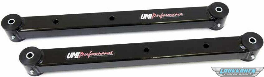DescripciónTrailing Arm - Tubular - Lower - Polyurethane Bushings - Boxed - Steel - Black Powder Coat - GM A-Body 1964-72 - Pair