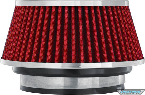 Air Filter Element - Clamp-On - Conical - 6 in Base - 4.75 in Top Diameter - 2.625 in Tall - 3 to 4 in Flange - Reusable Cotton - Red - Universal - Each