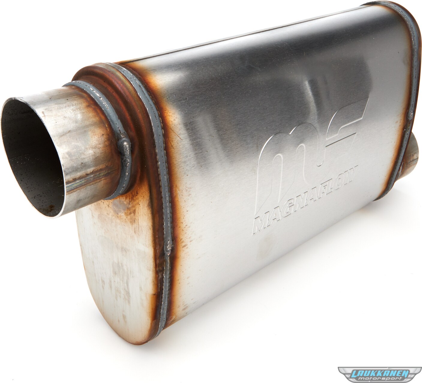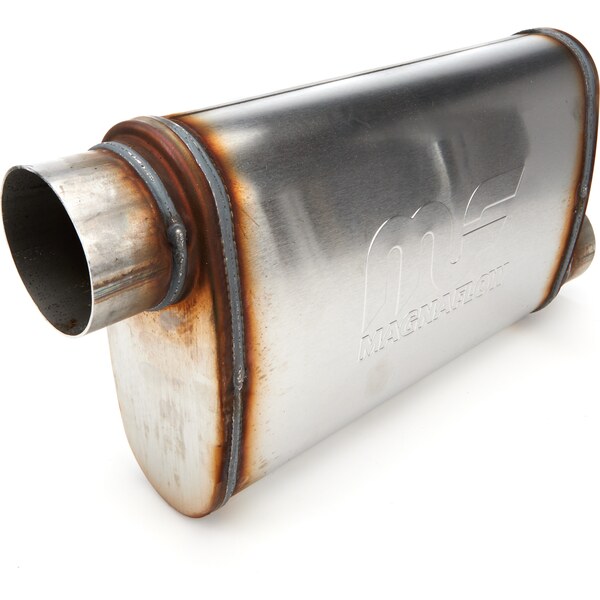 DescripciónMuffler - 3 in Offset Inlet - 3 in Offset Outlet - 14 x 9 x 4 in Oval Body - 20 in Long - Stainless - Natural - Universal - Each