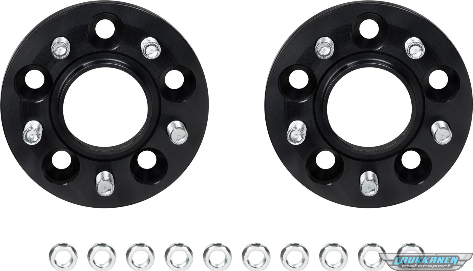 Wheel Spacer - 5 x 114.3 mm Bolt Pattern - 20 mm Thick - Lug Nuts Included - Aluminum - Black Anodized - Tesla Model 3 2017-23 / Tesla Model Y 2020-25 - Pair