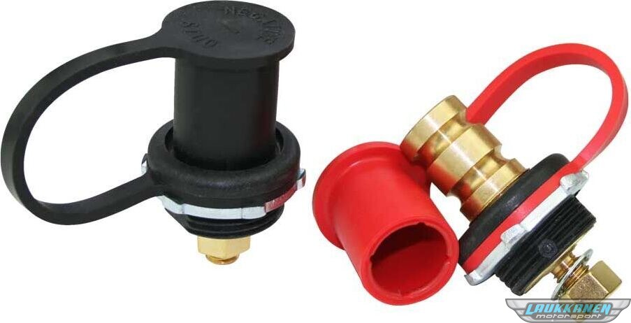 DescripciónRemote Battery Terminal - 6V to 36V - 1-9/32 in Diameter Hole - 3/8-16 in Stud - Brass - Rubber Cap - Black / Red - Pair