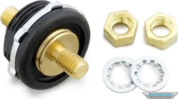 DescripciónBattery Cable Connector - Bulkhead - 6V to 36V - 1-1/4 in Diameter Hole - 3/8-16 in Stud - Black - Each