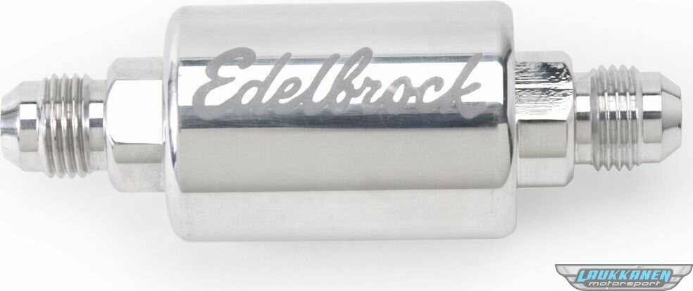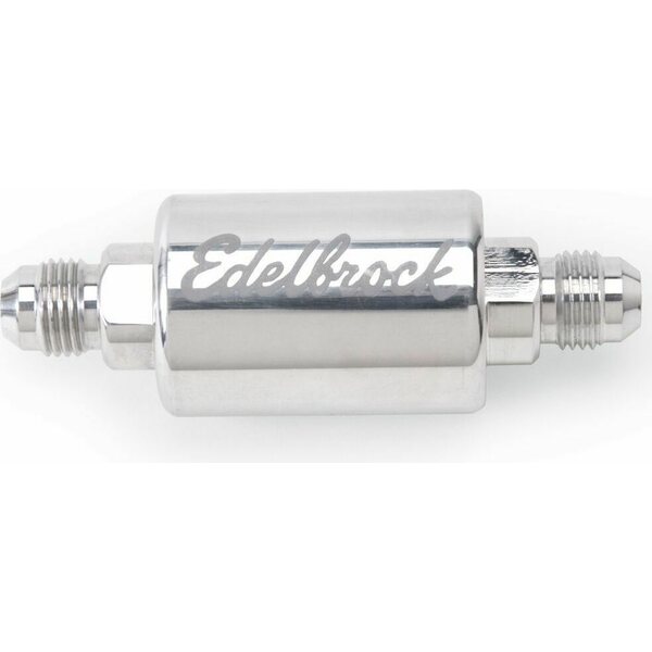 DescripciónFuel Filter - High Flow - In-Line - 40 Micron - Stainless Element - 6 AN Male Inlet - 6 AN Male Outlet - Aluminum - Polished - Each