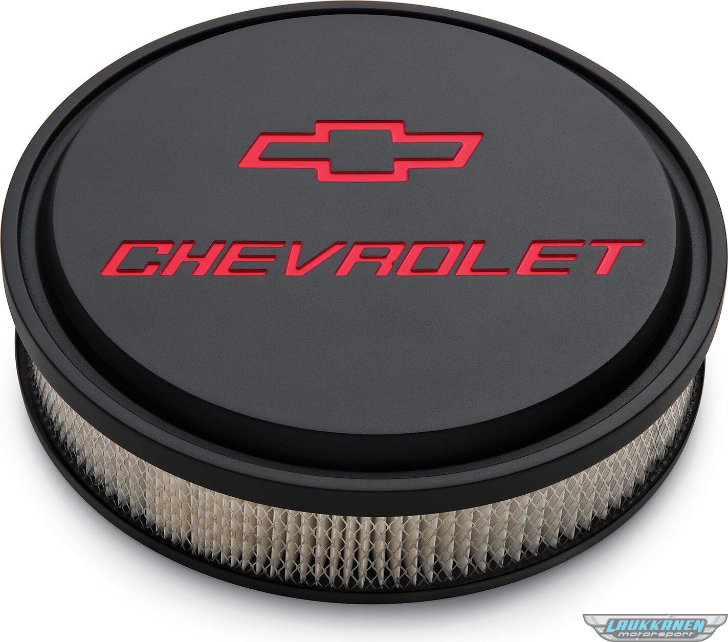 New Slant-Edge Air Cleaners are the perfect way to complete your dress-up look in premium Slant-Edge style. Initially six of the most popular styles that include raised and recessed emblems will be released! Whether you have Slant-Edge valve covers, or a set from a different series, these air cleaners will bring your engine look together in head turning fashion. They are supplied with genuine 3 inch GM air filter elements; GM P/N 6421746 or AC Delco P/N A212CW, for maximum airflow. Each kit is supplied with necessary mounting hardware. Technical Note: After installing a new air cleaner, always lower the hood slowly to confirm sufficient clearance visually. Minimum clearance of 3.75 inches is required from the top of the carburetor gasket area to the underside of the hood. For buyers wishing a taller, 4.031 inch filter, purchase GM P/N 8997189 or AC P/N A697C. The air cleaner bases are recessed for a low profile appearance, maximum performance and hood clearance. Patent Pending.