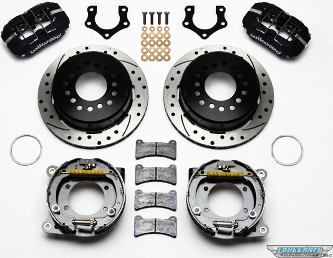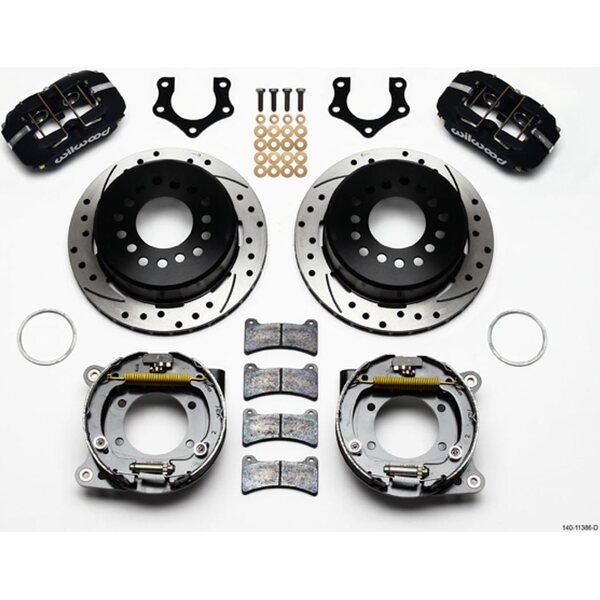 DescripciónBrake System - Dynapro Low-Profile - Rear - 4 Piston Caliper - 11.000 in Drilled / Slotted Iron Rotor - Parking Brake / Offset Hat - Aluminum - Black - Mopar / Dana - Kit