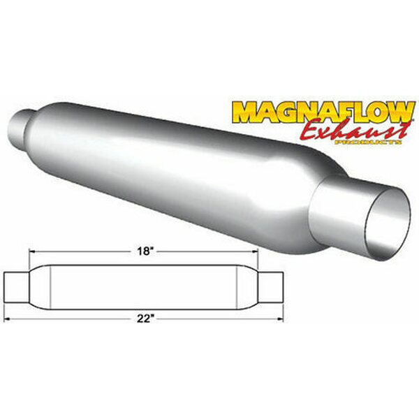 DescripciónMuffler - Glass Pack - 3 in Center Inlet - 3 in Center Outlet - 4 in Diameter Body - 22 in Long - Steel - Aluminized - Universal - Each
