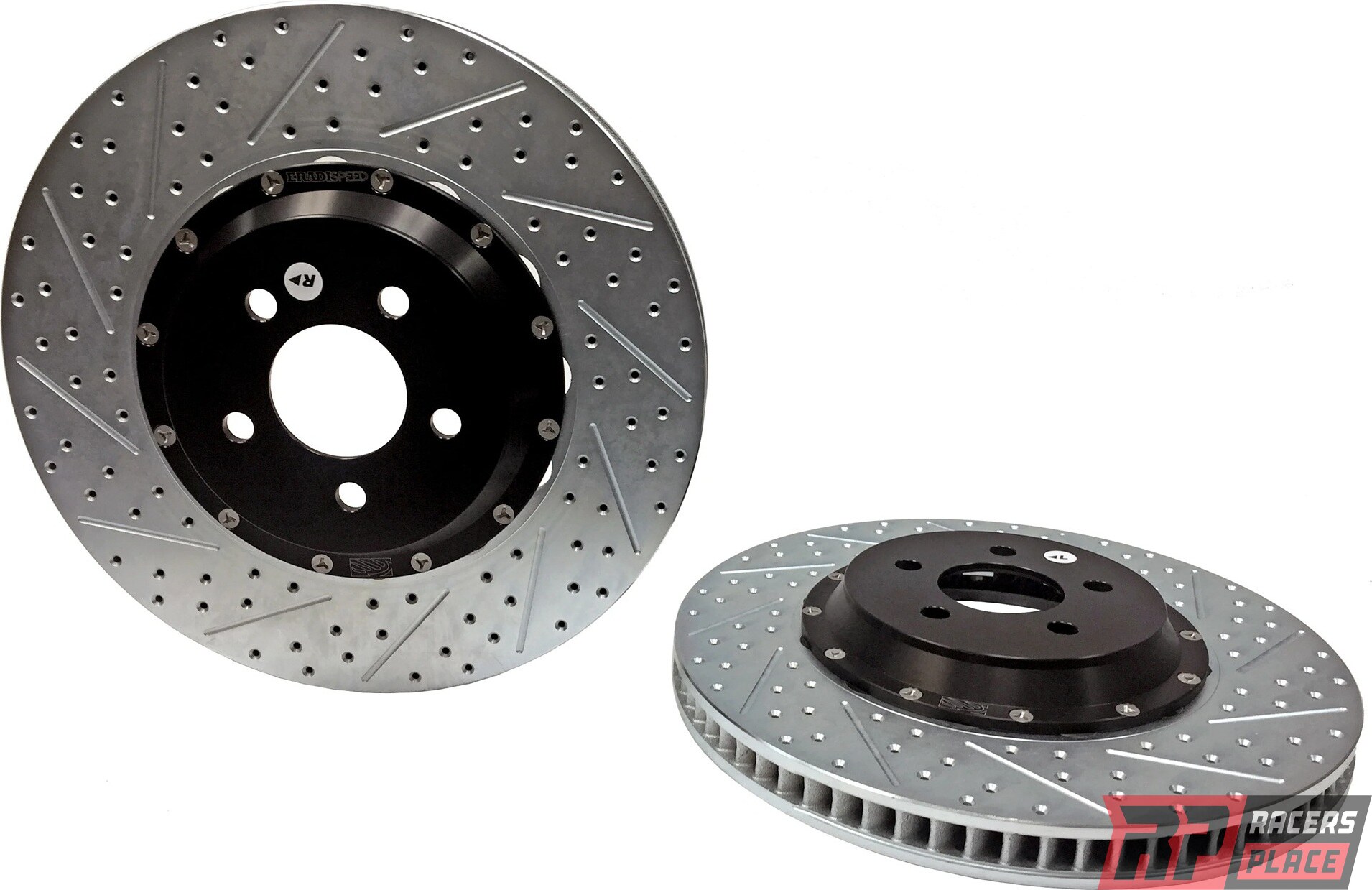 The EradiSpeed+ is a direct replacement 2pc rotor for the 2015-2017 Mustang GT Performance Package. This is designed to work with the Brembo 6 Piston Caliper brake system found on the GT Mustangs. These 15 inch rotors feature directional vanes, which advances cooling efforts and are a 2pc design with an anodized black 6061-T6 aluminum center hat bolted to the rotor ring, greatly reducing weight.