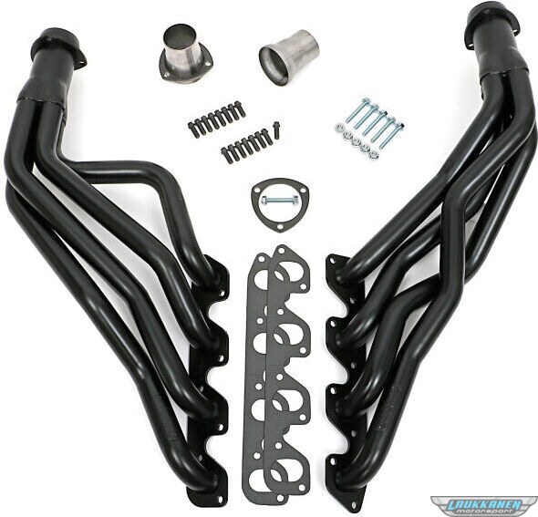 DescripciónHeaders - Street - 1-5/8 in Primary - 3 in Collector - Steel - Black Paint - Ford Cleveland / Modified - Ford / Mercury 1970-73 - Pair