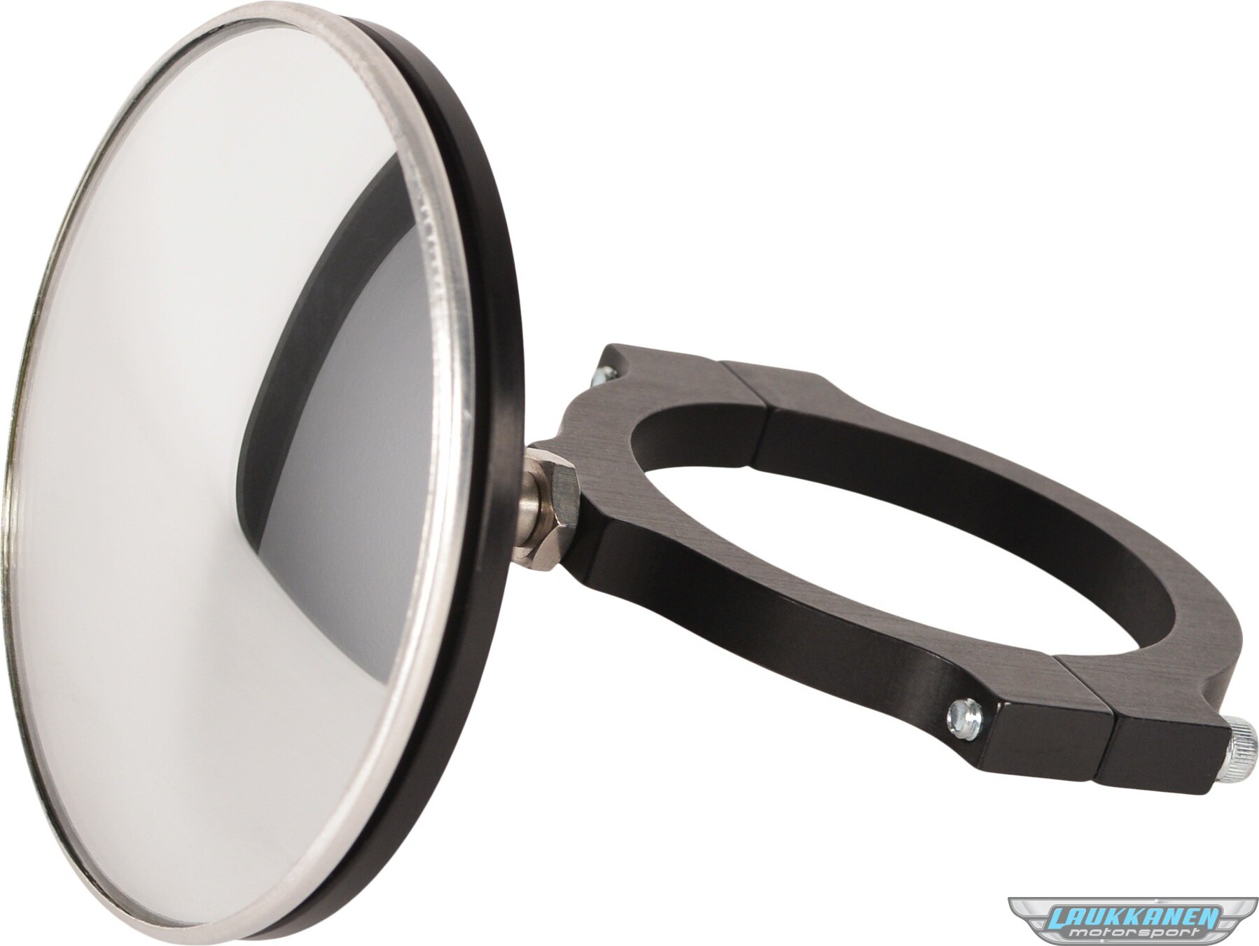 DescripciónMirror - Side View - Round - 3 in Diameter - Clamp-On - 1.75 in Tube - Aluminum - Black Anodized - Each