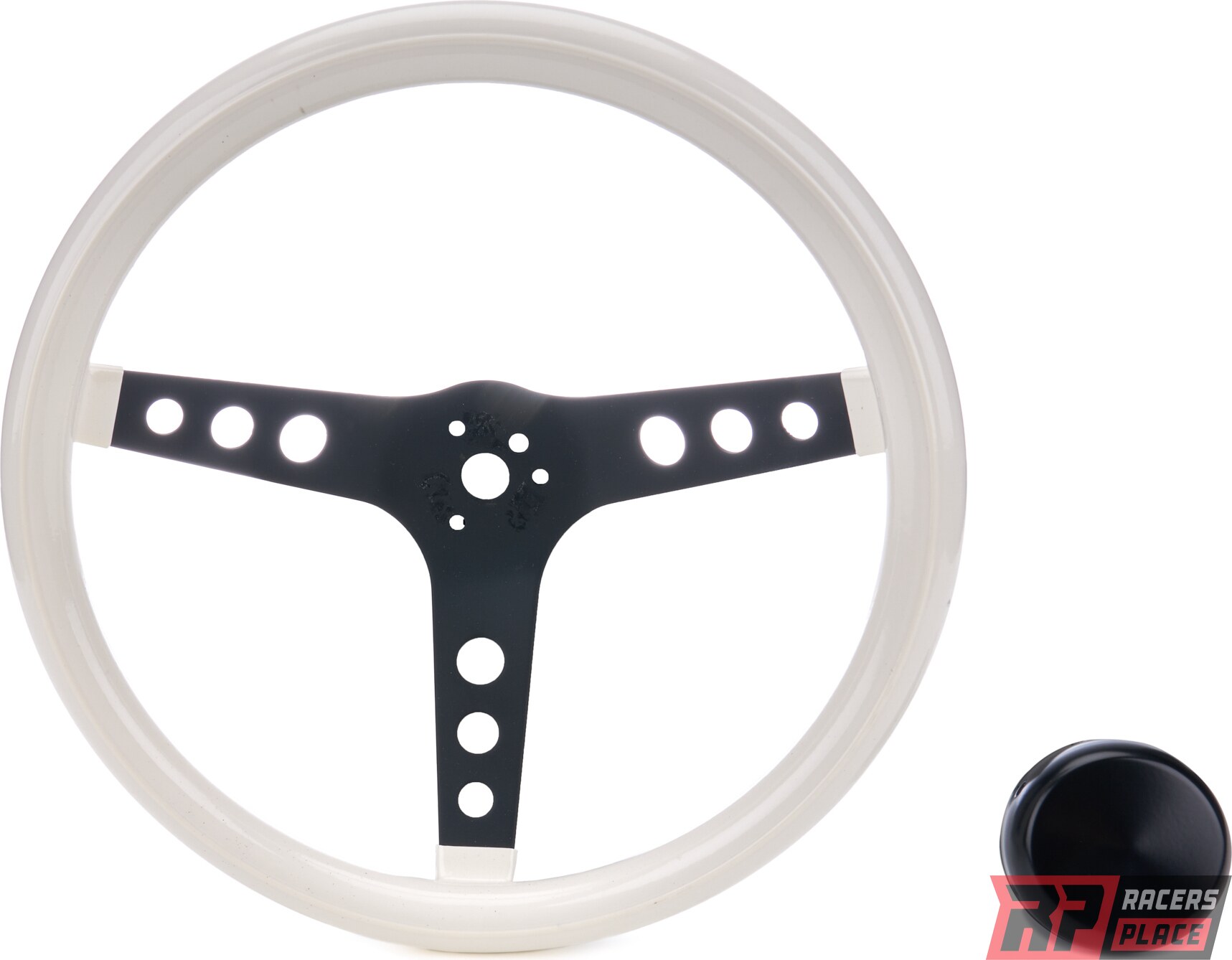 Steering Wheel - Classic Series - 13.75 in Diameter - 3.5 in Dish - 3-Spoke - White Foam Grip - Steel - Black Paint - Each