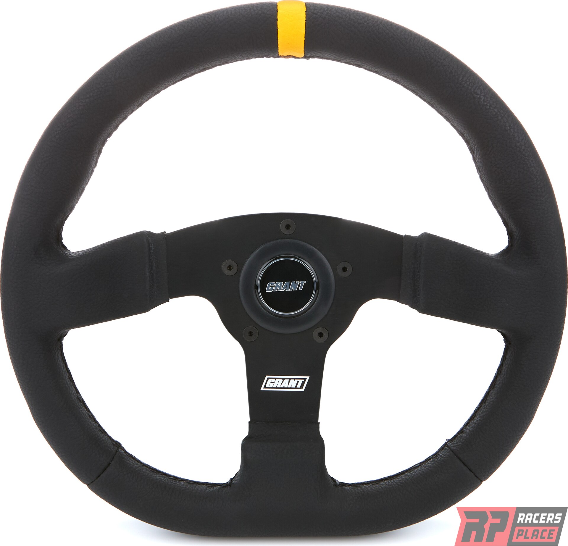 Toote kirjeldusSteering Wheel - Performance Flat Bottom - 13 x 12.25 in Diameter - D-Shaped - 1 in Dish - 3-Spoke - Black Vinyl Grip - Yellow Stripe - Aluminum - Black Anodized - Each