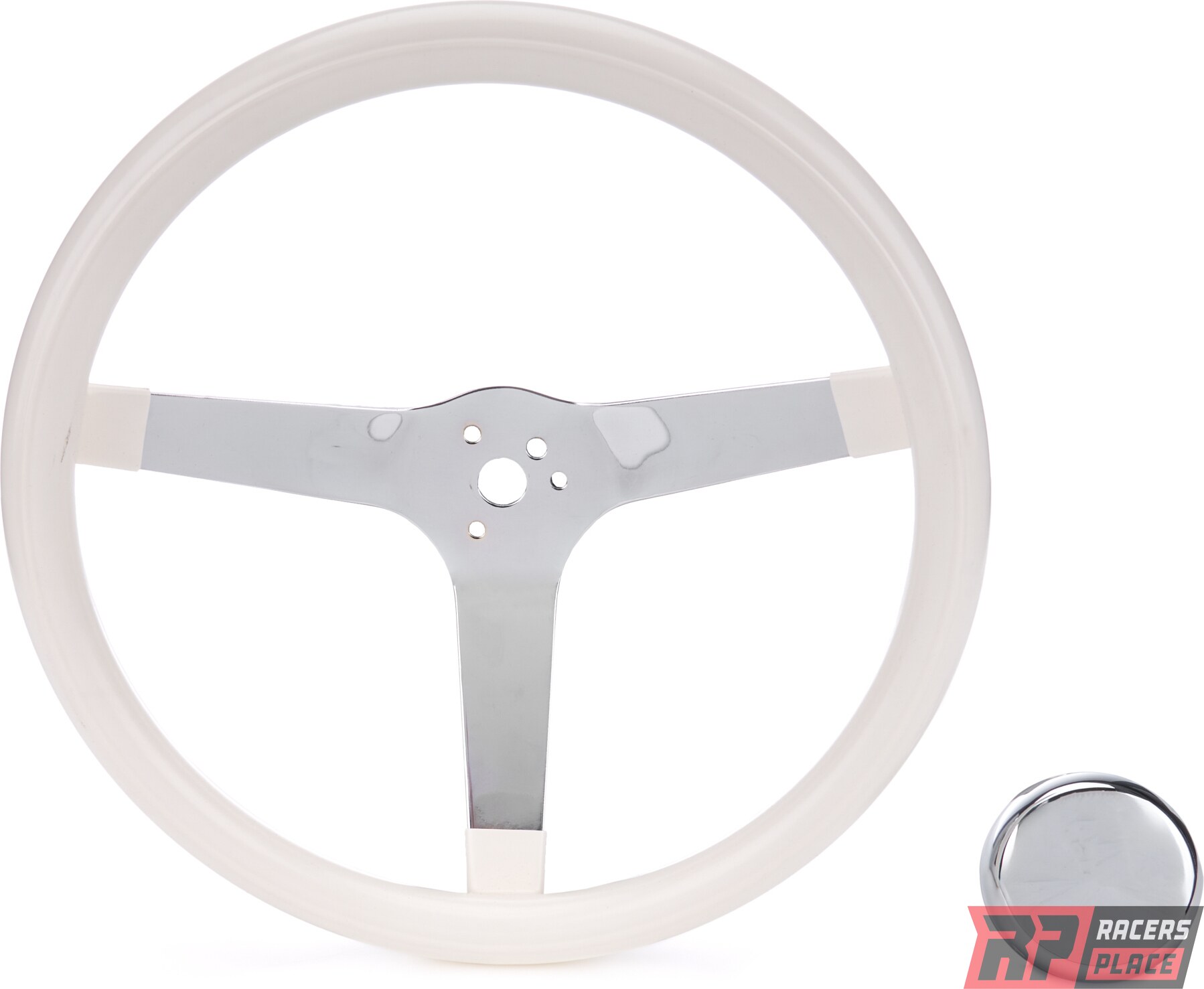 Steering Wheel - Classic Series - 13.5 in Diameter - 3.5 in Dish - 3-Spoke - White Foam Grip - Steel - Chrome - Each
