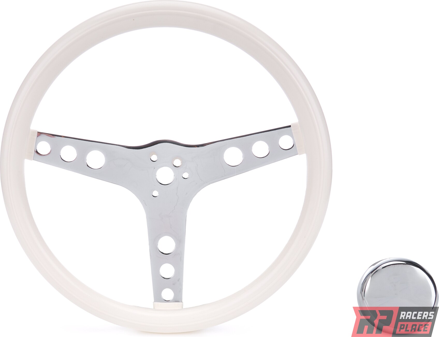 Steering Wheel - Classic Series - 13.5 in Diameter - 2 in Dish - 3-Spoke - White Foam Grip - Steel - Chrome - Each