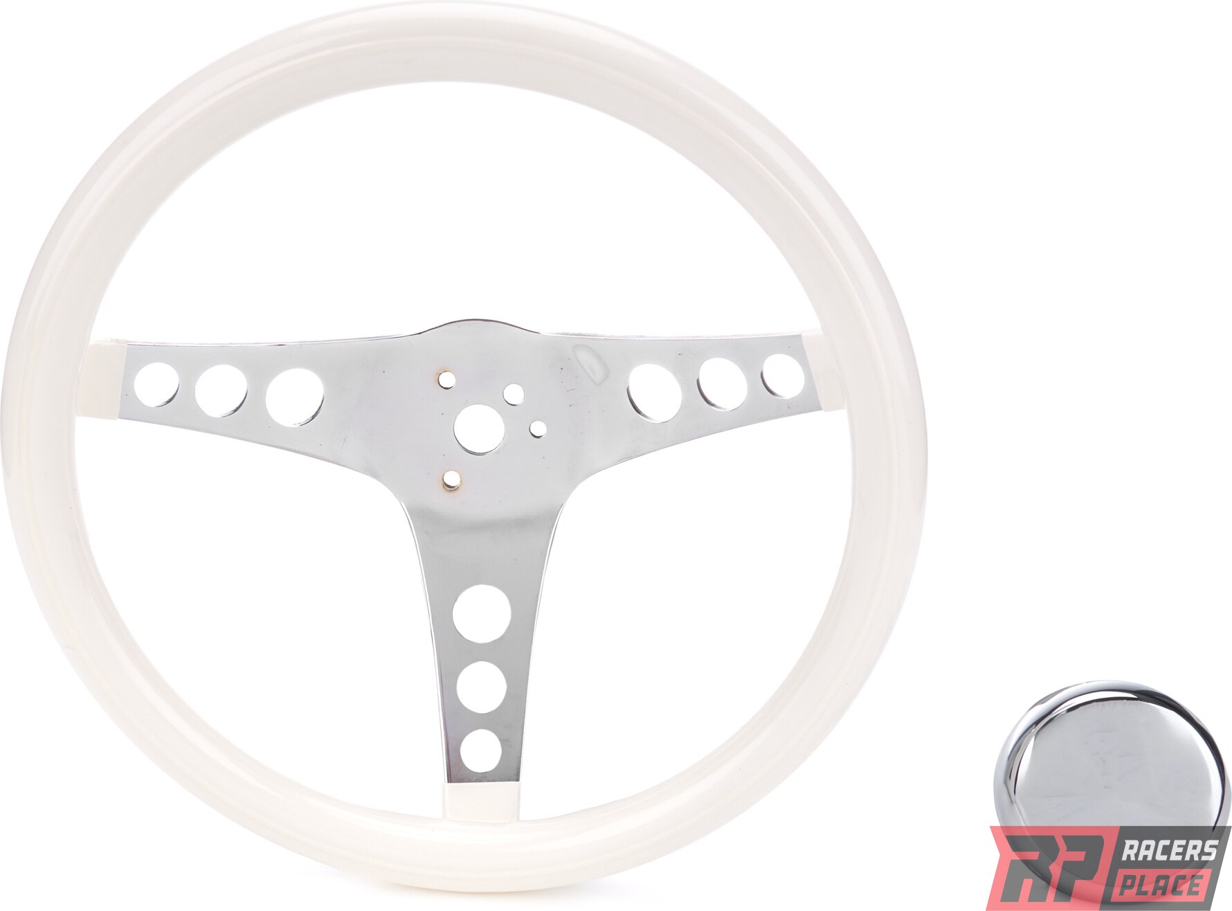 Steering Wheel - Classic Series - 12.5 in Diameter - 3.5 in Dish - 3-Spoke - White Foam Grip - Steel - Chrome - Each