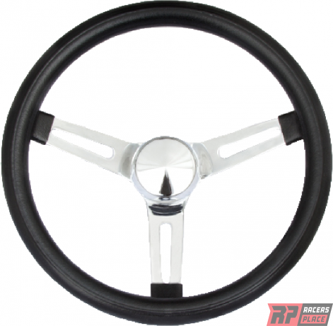 Steering Wheel - Classic Series - 13.5 in Diameter - 3.5 in Dish - 3-Spoke - Black Foam Grip - Steel - Chrome - Each
