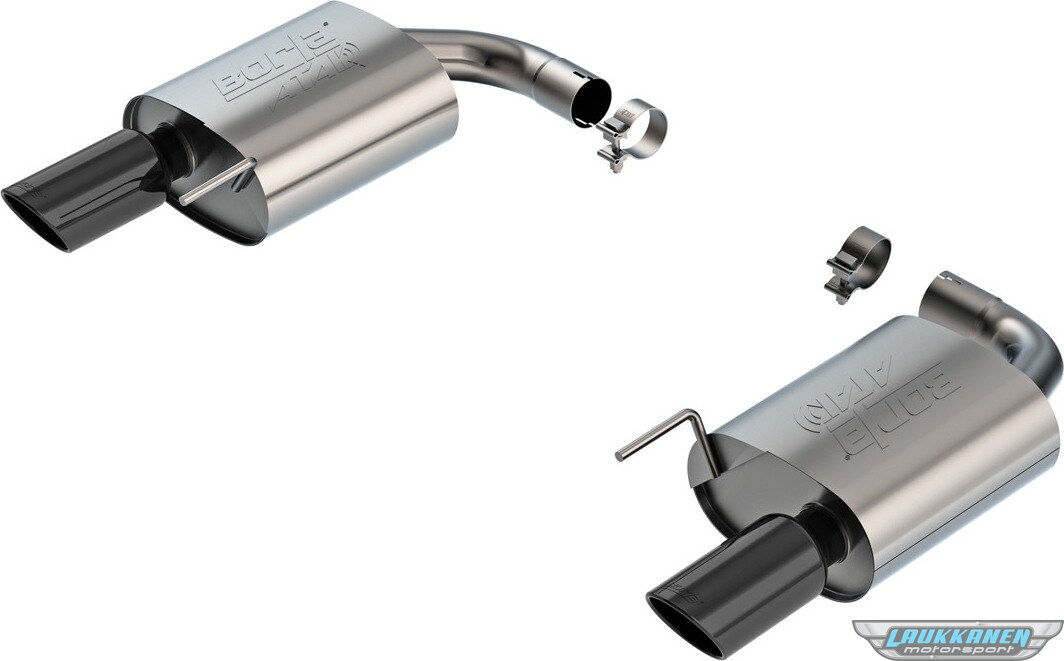 Exhaust System - ATAK - Axle-Back - 2.5 in Diameter - Dual 3 in Rear Exit - 4 in Black Polished Tips - Stainless - Natural - Ford Coyote - Ford Mustang 2024 - Kit