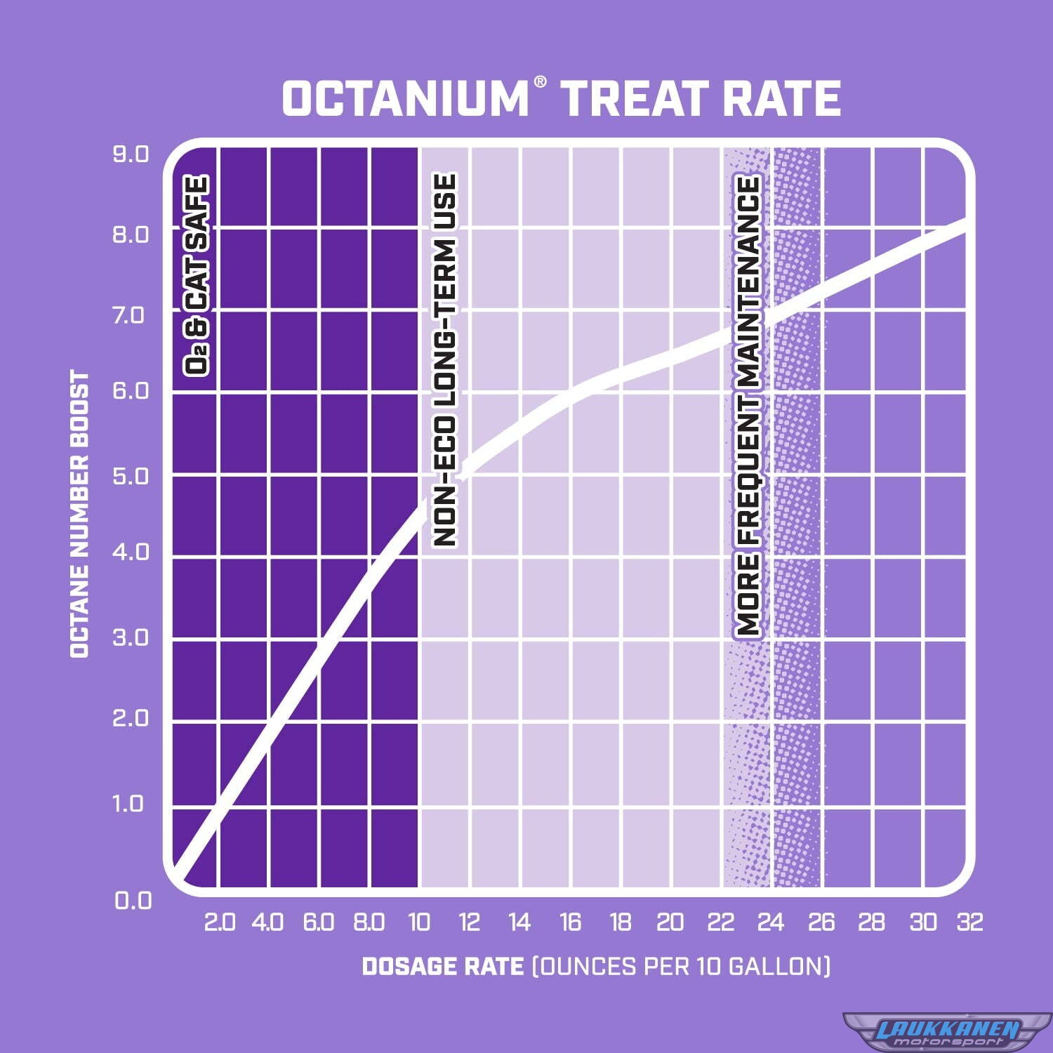 Octanium® gas octane booster gives you a high octane boost of up to 8 (US) numbers (80 points).