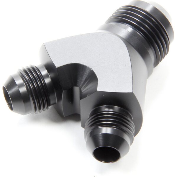 Description du produitFitting - Y Block - 12 AN Male Inlet - Dual 8 AN Male Outlets - Aluminum - Black Anodized - Each