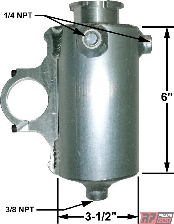 Recovery Tank - Coolant - 31.97 oz - 8 in Tall - 3-1/2 in Diameter - Dual 1/4 in NPT Female Inlets - 3/8 in NPT Female Outlet - Aluminum - Each