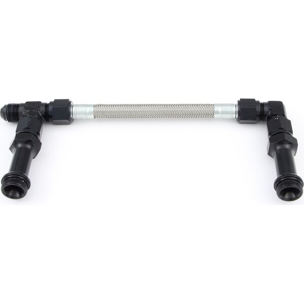 Carburetor Fuel Line - 8 AN Single Male Inlet - 7/8-20 in Dual Outlets - Braided Stainless Hose - Black / Silver - Holley 4150 - Kit