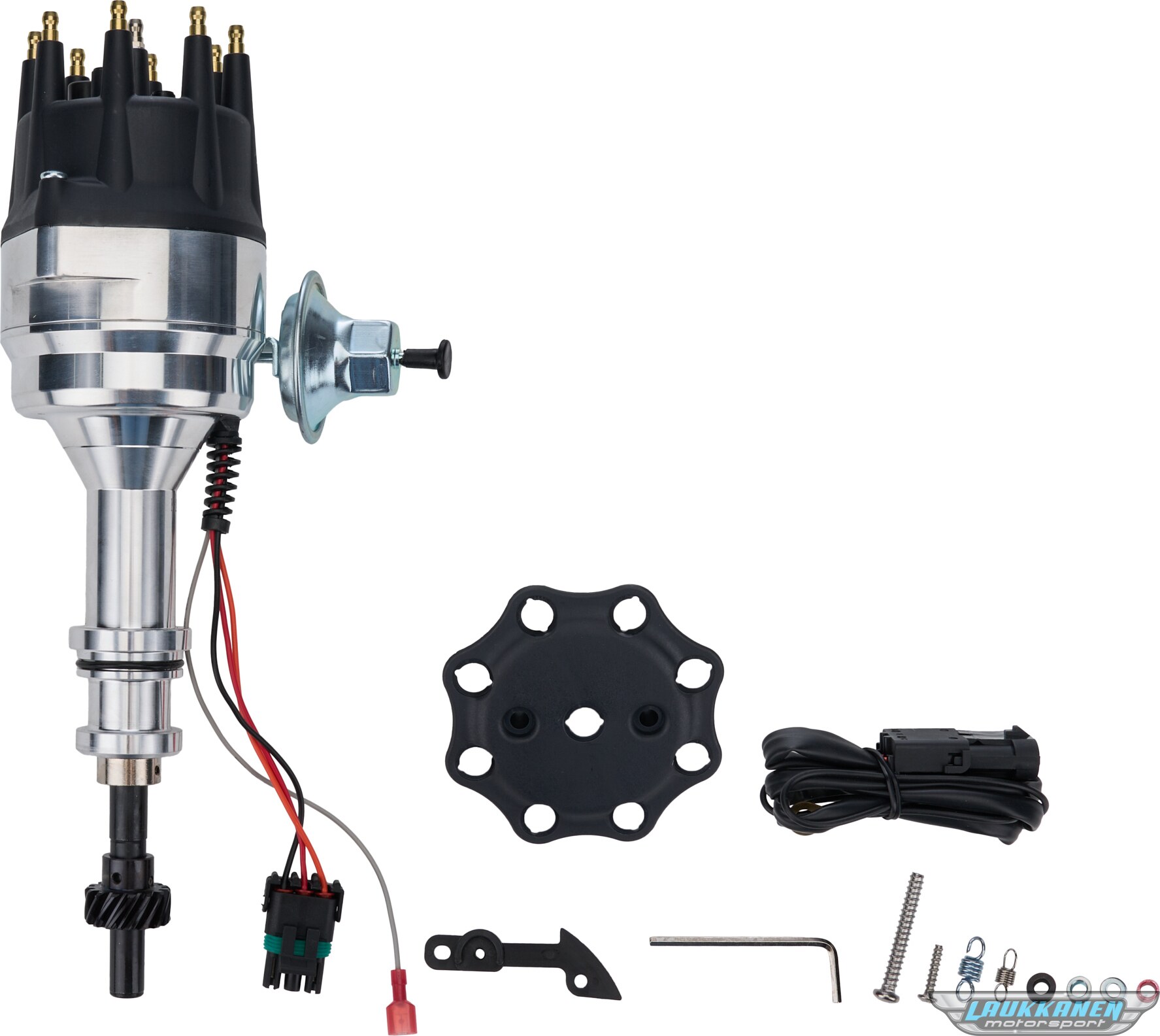 This distributor features a .531 diameter shaft and includes a cast iron drive gear (OE Blue Dot w/1.249 OD) for use with flat tappet camshafts. Consult your engine builder or camshaft manufacturer for the correct drive gear for your application. This does not have a melonized gear.