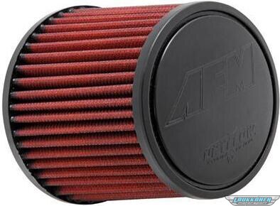 AEM- AEM-21-2011DK - Air Filter Element - Dryflow - Clamp-On - Conical - 5.5 in Base Outside Diameter - 4.75 in Top Outside Diameter - 5 in Tall - 2.5 in Flange - Reusable Cotton - Red - Universal