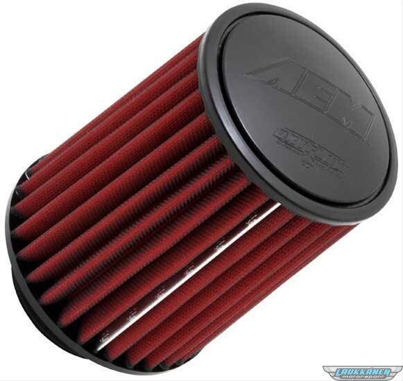 AEM- AEM-21-2147DK - Air Filter Element - Dryflow - Clamp-On - Conical - 6 in Base - 5-1/4 in Top Diameter - 7 in Tall - 3-1/2 in Flange - Synthetic - Red - Universal