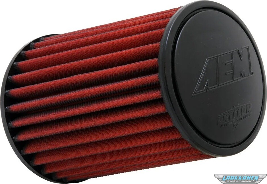 AEM- AEM-21-2038DK - Air Filter Element - DryFlow - Clamp-On - Conical - 6 in Base - 5-1/8 in Top Diameter - 8-1/8 in Tall - 3 in Flange - Synthetic - Red - Universal