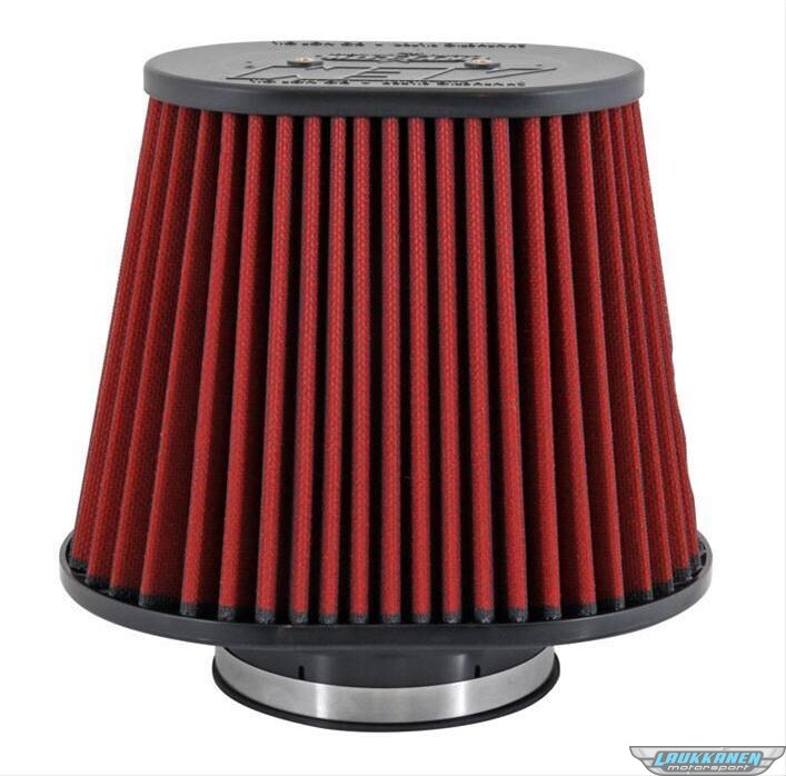 AEM- AEM-21-2258DK - Air Filter Element - DryFlow - Clamp-On - Tapered Oval - 10-1/2 x 8 in Base - 7-3/4 x 5 in Top - 8 in Tall - 5 in Flange - Synthetic - Red - Universal