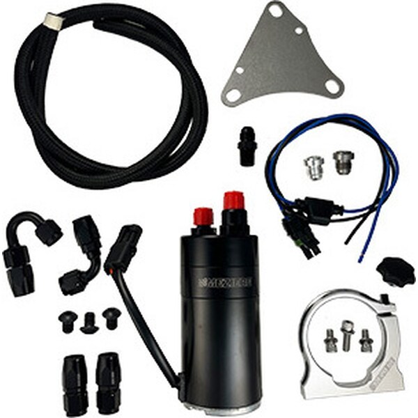 Produkt beskrivelseOil Accumulator - 6 AN Male Inlet / 6 AN Male Outlet - Bracket / Fittings / Hose Ends / Hose - Aluminum - Black Anodized - Kit